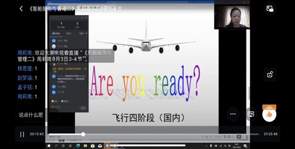 《客舱服务与管理(二)》课程是空乘专业核心课程之一,周莉南老师采用钉钉“圈子空间分享+群直播”混合在线教学方式,在同步课堂上对学生进行提问和答疑,和学生们保持着及时互动。课后,她利用钉钉圈子给学生们布置作业,及时跟进、了解学习情况。