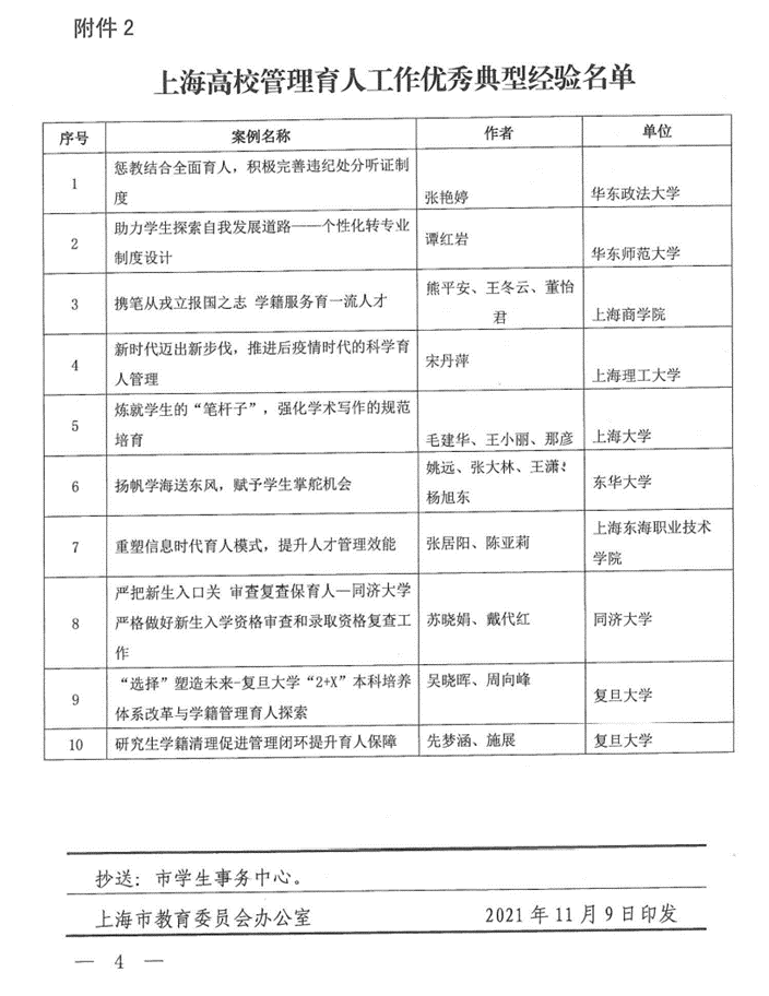 为全面贯彻落实全国高校思想政治工作会议精神和全国教育大会精神,深入探索新时期加强高校管理育人工作的规律和途径,交流和推广各高校管理育人工作的好做法、好经验,市教委面向全市高校、研究生培养单位广泛征集各高校在推进管理育人工作方面的创新举措和典型经验。我校此次报送的经验案例主要总结了学校“东海智教计划”实施以来,教务体系在借助信息化技术开展学籍学历育人管理等方面的创新探索和成功经验,案例同时也是2020年校党建与思政研究课题“民办高职院校学籍学历管理育人实践案例研究”的主要研究成果。希望通过此项经验案例在全市高校的推介,能为兄弟院校乃至本市高校管理育人工作改革创新贡献一份力量。(通讯员 张居阳)