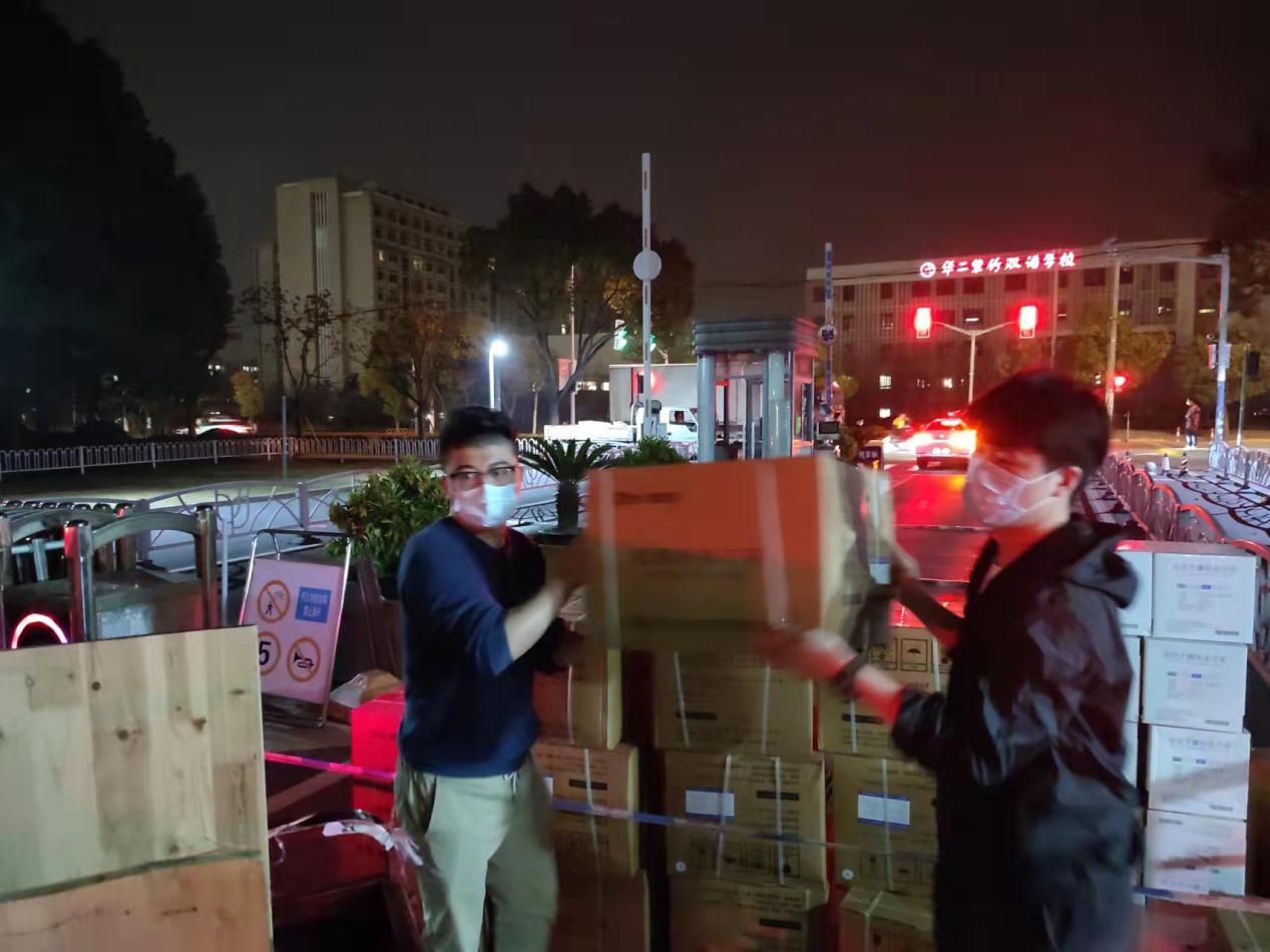 3月11日晚,距学校启动应急预案不到4小时,满载着6000桶方便面和250箱矿泉水的厢式货车便已经到达学校大门口。资产处克服困难,在前期多方联系供应商、多渠道调配货源的基础上,紧急发运预订物资,及时保障该批物资转运到学校指定地点。资产处负责人带领采购人员连夜在现场组织、协调,在相关职能部门的配合下,物资转运过程井然有序。