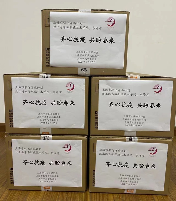 3月27日 ,学校收到由上海市女企业家协会、上海市教育系统妇工会、上海市儿童基金会组织发起的“上海市职飞海鸥计划”送来的爱心礼包后,东海学院的海鸥志愿者就立即行动起来了,她们第一时间将物资送至坚守岗位的教师及防疫志愿者手中。