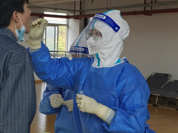 东海护理学院“抗疫天团”变身“大白” 校园核酸采样请让我们上