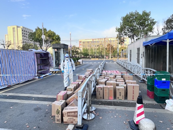 保卫处的同志组织门卫安保人员,严格落实防控要求,认真检查登记每位进出校的人员信息,严格落实进校生活保障物资、防疫应急物资消毒,在缓冲再搬运。特别是食堂的保障物资常常是深夜或凌晨送到,安保人员丝毫不懈怠,认真按照要求登记、消毒,展现了良好的主人翁意识、服务意识和全局意识。