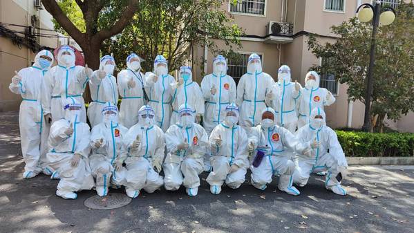 时隔两年再次穿上防护服,再次跟熟悉的朋友一起搭档,心中有喜悦也有难过,喜悦的是又可以一起并肩作战了,难过的是上海疫情那么严重。俞俊家住松江。从4月1日开始小区封控,他工作时间里每天清晨五点半到居委会报到,与搭档一起负责社区核酸采样相关工作。通常,清晨六点开始核酸时,很多居民还在睡觉,需要他们上门提醒。核酸检测结束了,腿也软了,嗓子也失声了,但俞俊他们总能高效及时地完成居委交办的任务。小区被封闭的前三四天还好,可时间长了很多居民都憋不住了,也有很多怨气。俞俊每日巡逻小区,劝阻出来的居民回去,帮助配送物资等。为了做好志愿者,俞俊把小区每户人家门牌号都记住了,成功变身为小区小马达,小灵通。小区的居民从开始的不理解和抱怨,到现在大家都交口称赞,纷纷夸他们是小区最美志愿者。俞俊的志愿者服务还在继续,他用热情和真诚去感染每一个人。