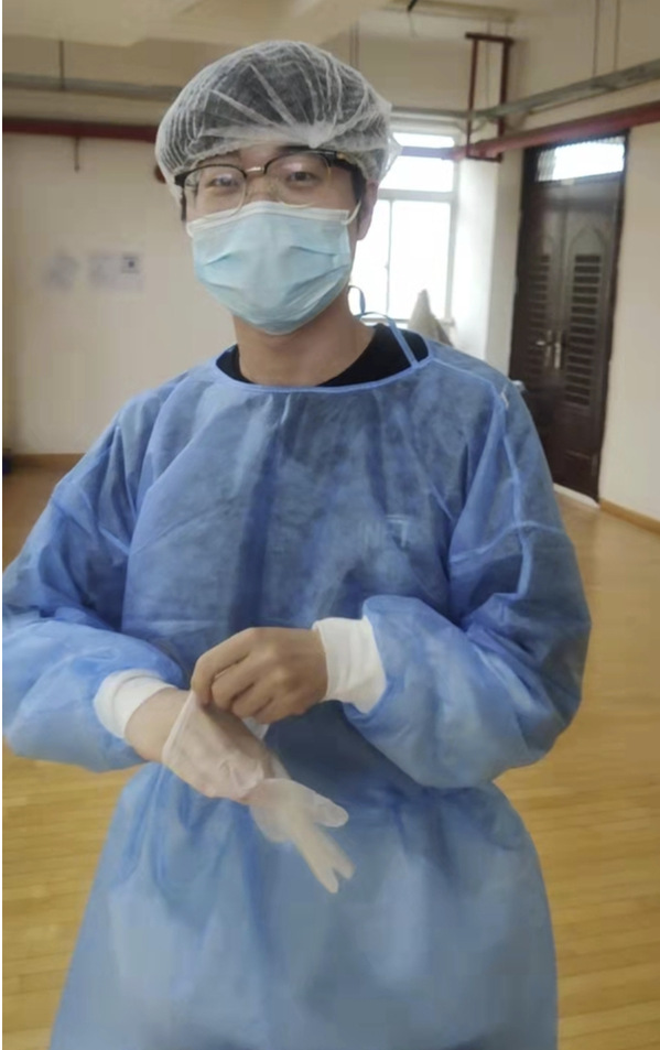 3月28日清晨5点,机电201班的倪义城同学起床洗漱,简单吃完早饭后,来到黄浦区五里桥街道瞿东居委大楼,狭小的居委办公室早已站满小区志愿者们。在医护工作者的指导下,他穿上防护服,投入一天紧张的工作中。