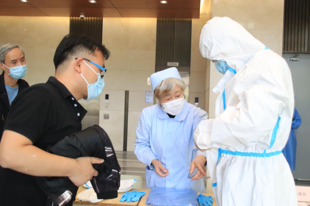 从15日接到实操培训任务后,护理学院就开始精心准备培训教案,将穿脱防护服的步骤做成了流程图方便志愿者们记忆。“由中间至两边按压,使其紧贴鼻梁,双手完全覆盖住口罩,快速呼气,检查口罩四周有无漏气。”两位老师为现场志愿者们演示手部清洁、防护服穿脱、进行鼻拭子、咽拭子采样讲解;志愿者两两一组开始练习。最后对志愿者进行防护服穿脱、鼻拭子采样、咽拭子采样考核。培训考核后,党委书记曹蓉蓉对护理学院及志愿者们的辛勤付出表示感谢,希望大家课后巩固实操要点,努力消化培训内容,日后积极投身于校园核酸采样队伍中,共建无“疫”东海。