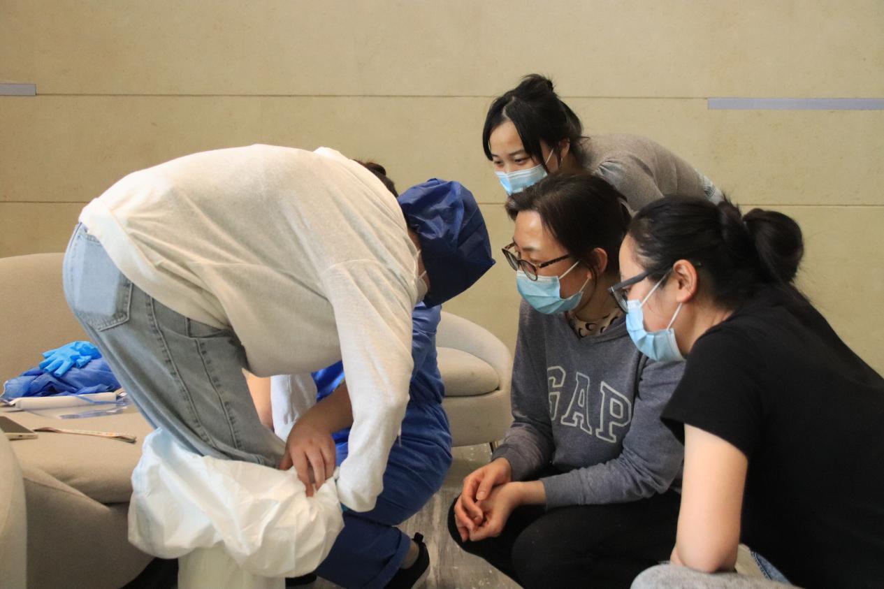 5月17日下午,我校护理学院院长桑未心、实训员张桐桐为首批12名核酸采样志愿者开展了严格的实操培训及考核。