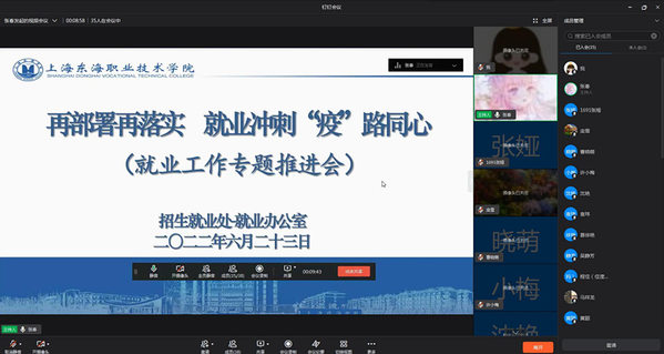 为确保实现2022届毕业生“稳就业”“保就业”工作目标,6月23日下午,东海学院《再部署再落实,就业冲刺“疫”路同心》就业工作专题推进会在线上召开,对做好最后就业冲刺阶段的毕业生就业工作进行再动员、再部署。会议由副校长郁萍主持,各学院院长、直属党支部书记、2022届毕业班辅导员及就业办全体成员出席。