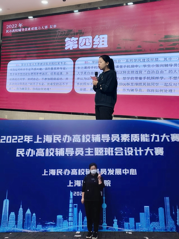 在9月14日结束的上海市民办高校辅导员主题班会比赛中,我校辅导员尹一伊获得三等奖;同日举办民办高校辅导员职业能力大赛,辅导员周小娟通过初赛和复赛,顺利进入下周决赛。
