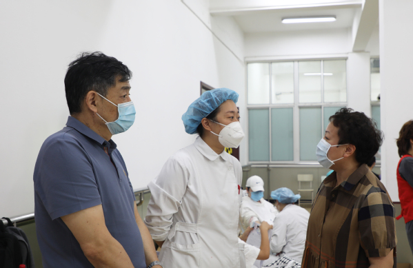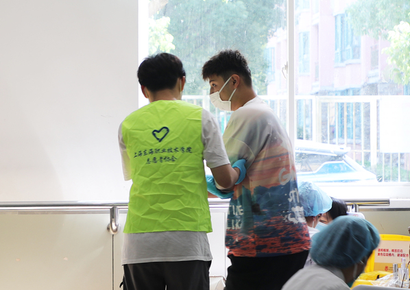 此次为学校采血的是上海市血液中心的医务人员,他们既专业又细心,认真做好采血工作。由殷国光医生带领的学校保健站团队在现场忙碌着,负责相关工作协调、医疗咨询、服务保障等工作。殷国光表示,此次献血活动原定于2022年3月,因为上半年的突发疫情推迟了。9月份接到活动通知后,学校第一时间组织发动,师生积极响应参与,进展顺利。