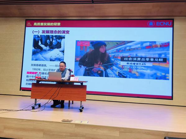 速继明教授的讲座,从历史的沿革、实践的发展、理论的视角充分阐述了实现高质量发展是我国经济社会发展历史、实践和理论的统一,用生动有趣的案例将十九届六中全会决议中提到的必须实现创新成为第一动力、协调成为内生特点、绿色成为普遍形态、开放成为必由之路、共享成为根本目的的高质量发展,推动经济发展质量变革、效率变革、动力变革的深刻内涵丰富地呈现在教师面前。他语言幽默风趣、解读精准细腻,以宽广的知识视野和深厚的理论素养条分缕析地阐释了党的二十大精神以及高质量发展是开启全面建设社会主义现代化国家新征程、实现第二个百年奋斗目标的根本路径的非凡意义。