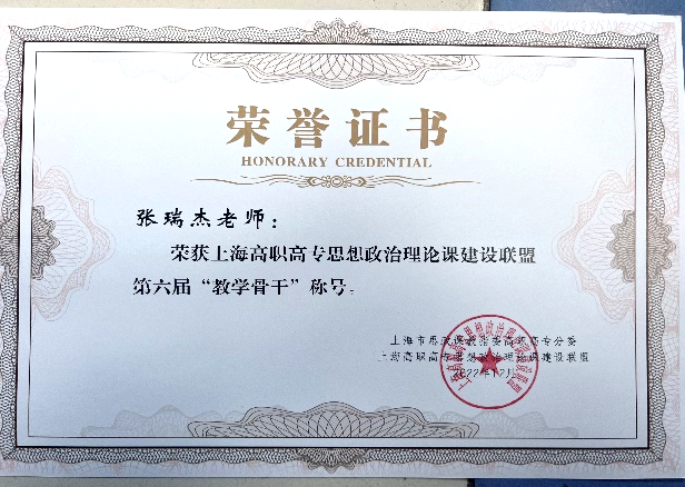 此外,在上海高职高专思想政治理论课建设联盟第六届年会的系列活动中,我校社科部荣获2022年上海市高职高专思政课建设先进集体。教师张瑞杰荣获“教学骨干”称号。