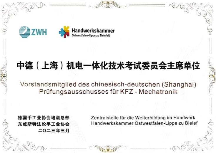 我校在中德职业教育合作方面取得的成绩得到德方的高度认可,由德国手工业协会培训总部和东威斯特法伦手工业协会联合颁发了“中德职业教育合作专业建设成果优秀单位”证书和“中德(上海)机电一体化考试委员会主席单位”证书。(通讯员 江可万)