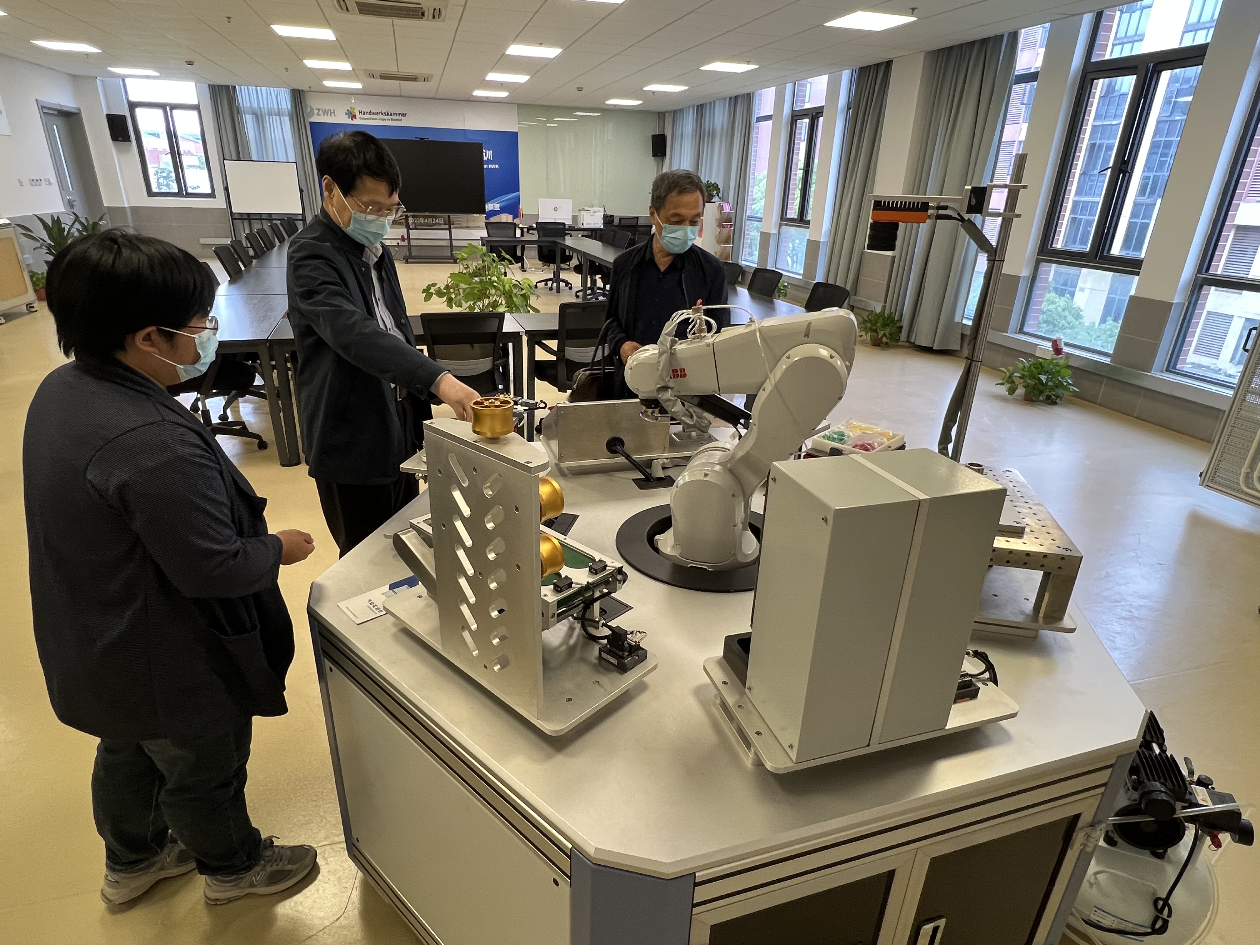 中午,张敏良院长一行参观了工程实训中心、中德IHK/AHK机电考培中心、东旭智能制造产业学院等,并对机电学院取得的成效和成果给予高度的赞扬。双方均表示有机会将进一步加强交流学习,携手并肩,共同提升办学水平、提升人才培养质量,为上海现代制造业输送更多的高素质技术技能人才。