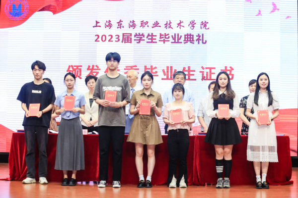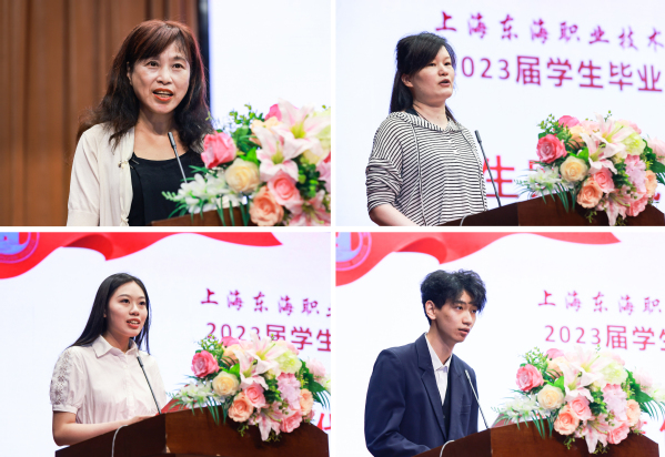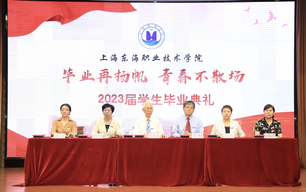 毕业视频《乘风》,讲述了2023届毕业生从入校到毕业的学习生活点滴,特别是建党百年庆和疫情防控志愿服务等片段的回顾,让在场的师生无不动容。董事长曹助我代表董事会致辞。他说东海学院是一个有着红色基因传承的学校,全体毕业生作为新时代技术技能型人才,应主动把爱国情、强国志、报国行自觉融入到新时代中国特色社会主义的伟大事业中;要坚持终身学习的理念,在不同岗位上创造价值;应善于把握机遇,拒绝“躺平”、克服“内卷”、正视困难。始终保持积极心态,在漫长岁月中活出人生精彩。机电学院机电211班陈名微、艺术设计学院艺术222班周晨瑜、传媒学院计技211班高吉的母亲分别作为毕业生代表、在校生代表和家长代表上台发言。他们表达了对东海岁月的眷恋、对师长栽培的感激、对未来生活的憧憬。护理学院院长张美琴作为教师代表发言。她寄语毕业生,在新的起点要志存高远、脚踏实地;要名必有实、事必有功;要珍惜青春、锲而不舍;要海纳百川,有容乃大。党委书记曹蓉蓉宣读上海市优秀毕业生、东海学院优秀毕业生表彰决定,校领导为优秀毕业生代表颁发荣誉证书,同时为各学院毕业生代表颁发毕业证书和毕业礼物。