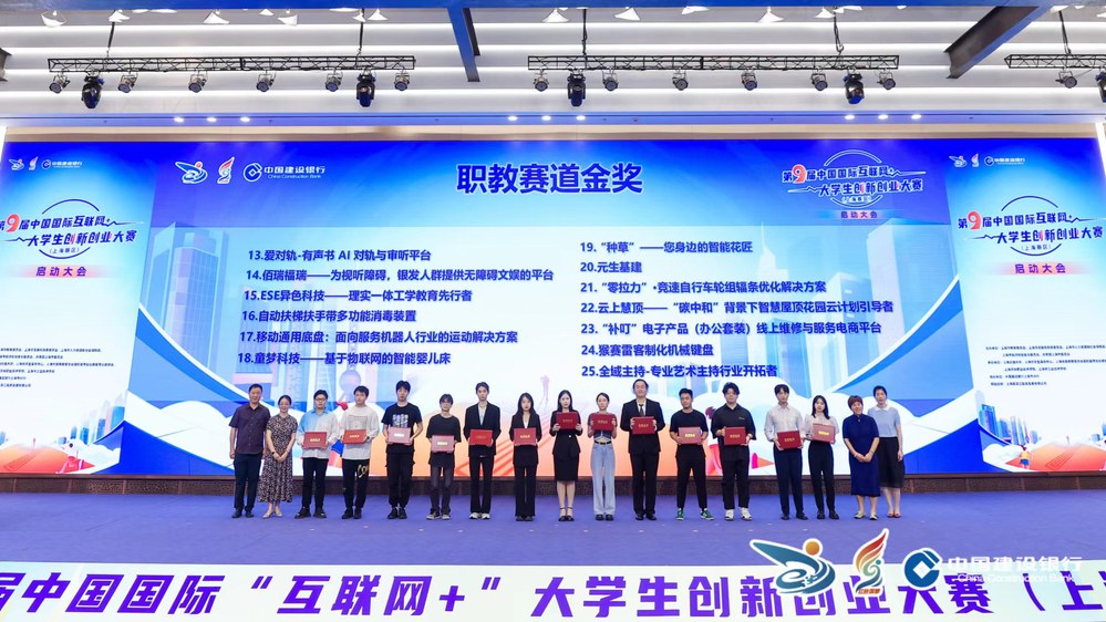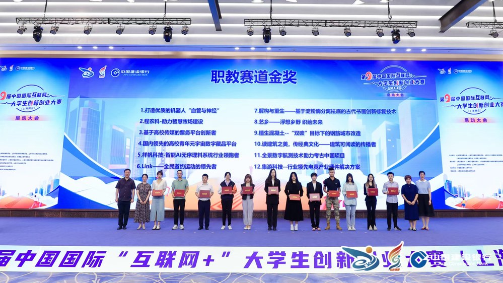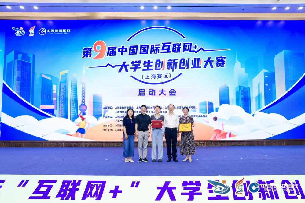 6月20日下午,第九届中国国际“互联网+”大学生创新创业大赛上海赛区启动会在大零号湾科创大厦举行。本次活动由上海市教育委员会、上海市发展和改革委员会、上海市人力资源和社会保障局、上海市经济和信息化委员会、共青团上海市委员会共同主办,上海交通大学、上海市学生事务中心、上海市高等教育学会高职高专创业教育专业委员会、上海农林职业技术学院、上海市工业技术学校承办,中国建设银行上海市分行协办。上海市本科高校、高职高专院校、中等职业学校400余名师生现场参会。学校副校长郁萍应邀出席启动会并担任颁奖嘉宾,就业办公室主任、创业指导站负责人张春以及上届金奖项目《童梦科技——基于物联网的智能婴儿床》团队负责人护理211朱妍参加启动会。