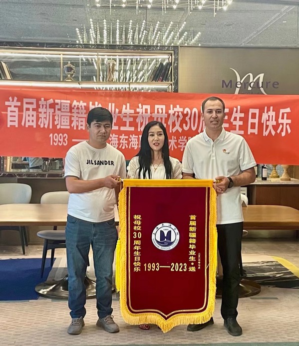 首届新疆籍毕业生,毕业10年,仍对母校满怀深情,得知老师们从上海来到喀什,特意从工作单位赶来相见,有的甚至驱车3个多小时,从莎车县赶来。他们还非常有心的为母校建校30周年送出了自己的美好祝愿。当他们打开精心准备的祝福母校的锦旗和横幅时,这份用心用情让在场的老师们无不动容,也更加明白了不远千里来新疆家访的意义。这是一场双向的奔赴,学工人用真诚地付出打开心扉,用生命影响生命,学生们用最朴实最真诚的方式表达着对母校的热爱,和作为东海人的骄傲。