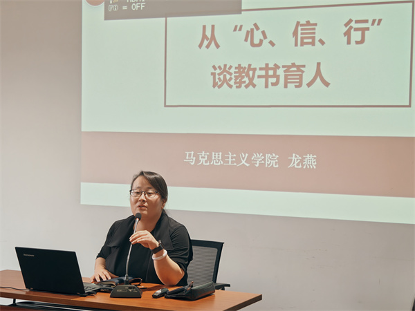 龙燕院长以“从心、信、行出发谈教书育人”为主题,结合自己在东海15年的工作经历,与新教师们进行了一场关于教书育人的交流。她认为教书育人要走“心”、要有信仰、要“行”之有效。她勉励新教师们要深刻地认识到作为一名人民教师所肩负的光荣使命,潜心立德树人,行为世范,学为人师,努力提升业务能力,争做“四有好老师”,做好“四个引路人”。 (通讯员 刘影)