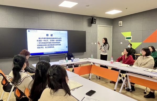 桂莉教授围绕科研的基本程序、护理科研课题的选题、设计及科研论文撰写等方面进行详细讲解,从选题技巧、研究内容、问卷调查、课题研究的总目标和特色创新点等方面逐一拆分讲解,并以真实论文案例举例说明。讲座结束后,桂莉教授还与现场教师代表互动,解答提问,提出建设性意见。
