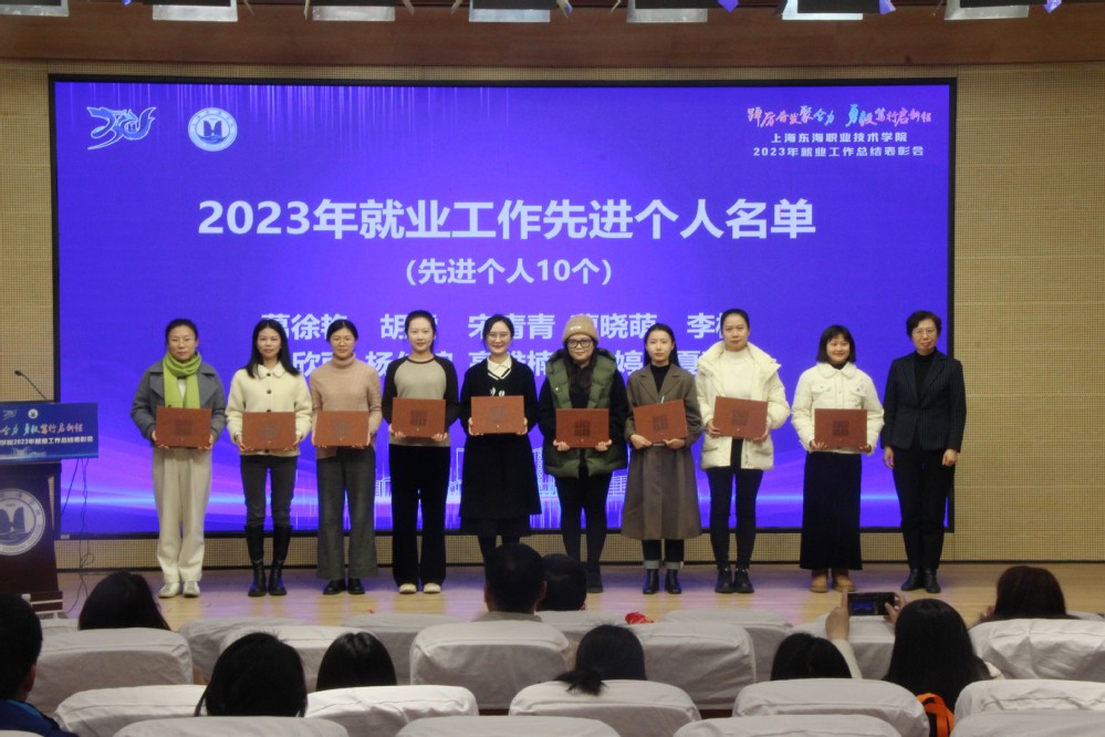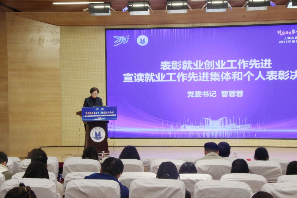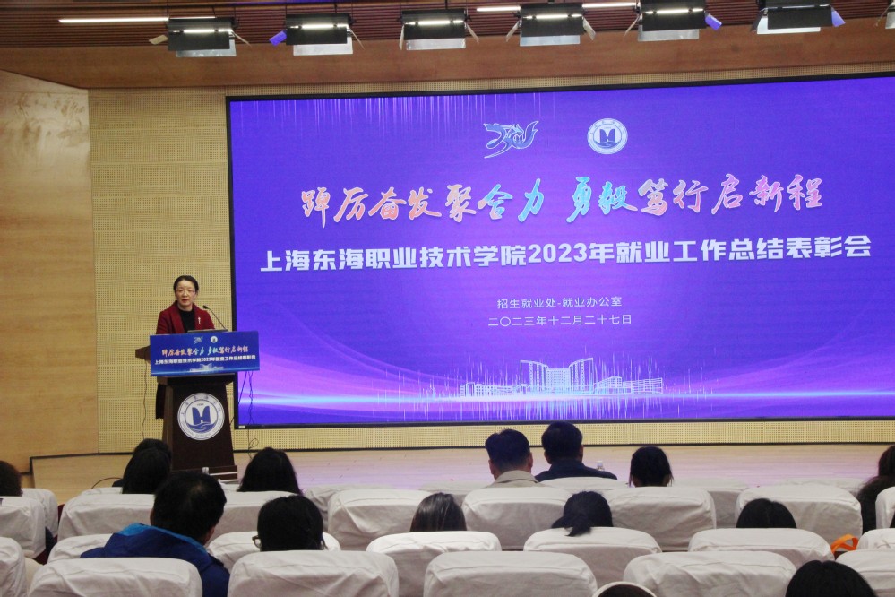 12月27日下午,上海东海职业技术学院2023年就业工作总结表彰大会在匠兴苑学术报告厅召开。我校党政领导、各二级学院院长、党支部书记及行政办主任、各职能部门负责人、全体辅导员、创新创业相关教师及招生就业处全体人员出席本次大会,会议由副校长郁萍主持。