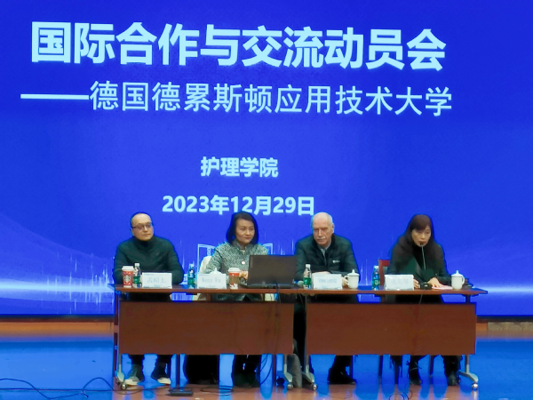 为切实提高人才培养质量,进一步提升护理学院学生学历层次,满足学生对本科学历层次提升需求,2023年12月29日上午,学院特别邀请德国德累斯顿应用技术大学的校董、FHD-Institut 董事长Volker Leipnitz教授,德累斯顿应用技术大学校长代表、国际事务负责人Weny Fu教授,以及德累斯顿应用技术大学中国学生事务负责人傅文青老师,来到我学院进行国际合作与交流,并在东海源报告厅为学生开展了德国德累斯顿应用技术大学护理专业专升本项目宣讲。