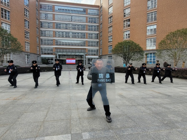 1月9日下午,上海东海职业技术学院的保安人员进行了盾牌训练。此次训练的目的是增强保安人员的应急反恐能力,提升他们对于突发事件的应对能力。