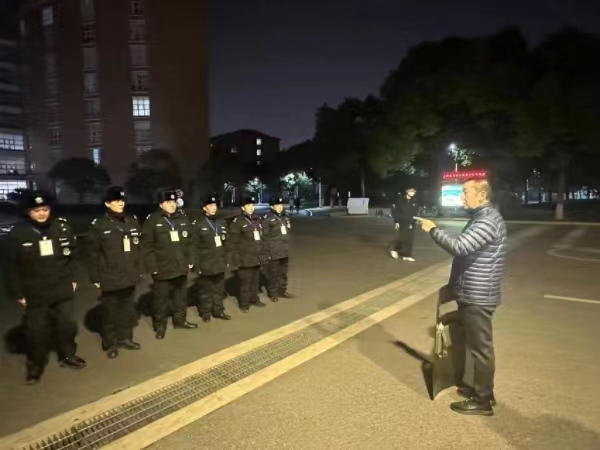 副校长郁萍表示,夜间是安全防范的重要时段,要通过加强夜间训练来提高保安团队的专业素质和应对能力。通过模拟实际突发情况,更好地评估和提高团队的应急反应速度和协作水平。