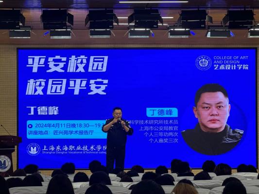 为夯实学院校园安全工作,贯彻总体国家安全观,提高艺术设计学院全体师生安全意识。2024年4月11日晚,“平安校园 校园安全”主题讲座于匠兴苑报告厅举行。刑事科学技术研究所技术员、上海市公安局教官丁德峰应邀主讲,为学院师生们分享刑事案例案件、民事纠纷事件。共计有260余名师生济济一堂,以讲促思,以思促知,有效汇聚起艺术设计学院师生对于民生安全、信息安全、个人安全意识。