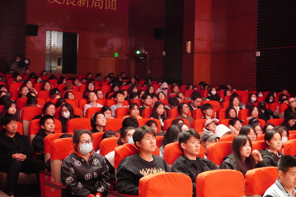 晚上18时,演出正式拉开帷幕。师生们座无虚席,认真观看。作品以党史专家吴海勇的纪实文学作品《起来——〈风云儿女〉电影摄制与〈义勇军进行曲〉创作历程纪实》为文献依据,以“大事不虚,小事不拘”为原则,不仅讲述了田汉、聂耳、夏衍、司徒慧敏、许幸之等进步青年参与、亲历、见证《义勇军进行曲》诞生的过程,更塑造出了以他们为代表、“用笔做刀枪”的左翼文艺工作者群像,通过艺术化地讴歌那个“风云时代”及其涌现的“风云人物”、演绎的“《风云儿女》”和孕育的“风云歌曲”,真正地打动人心,触发师生的爱国热情与民族自豪感。每一处情感的巅峰,师生们都报以雷鸣般的掌声。谢幕时,大家更是用热烈的掌声向演员们的全情演出表示真挚的感谢,掌声持续数分钟之久。