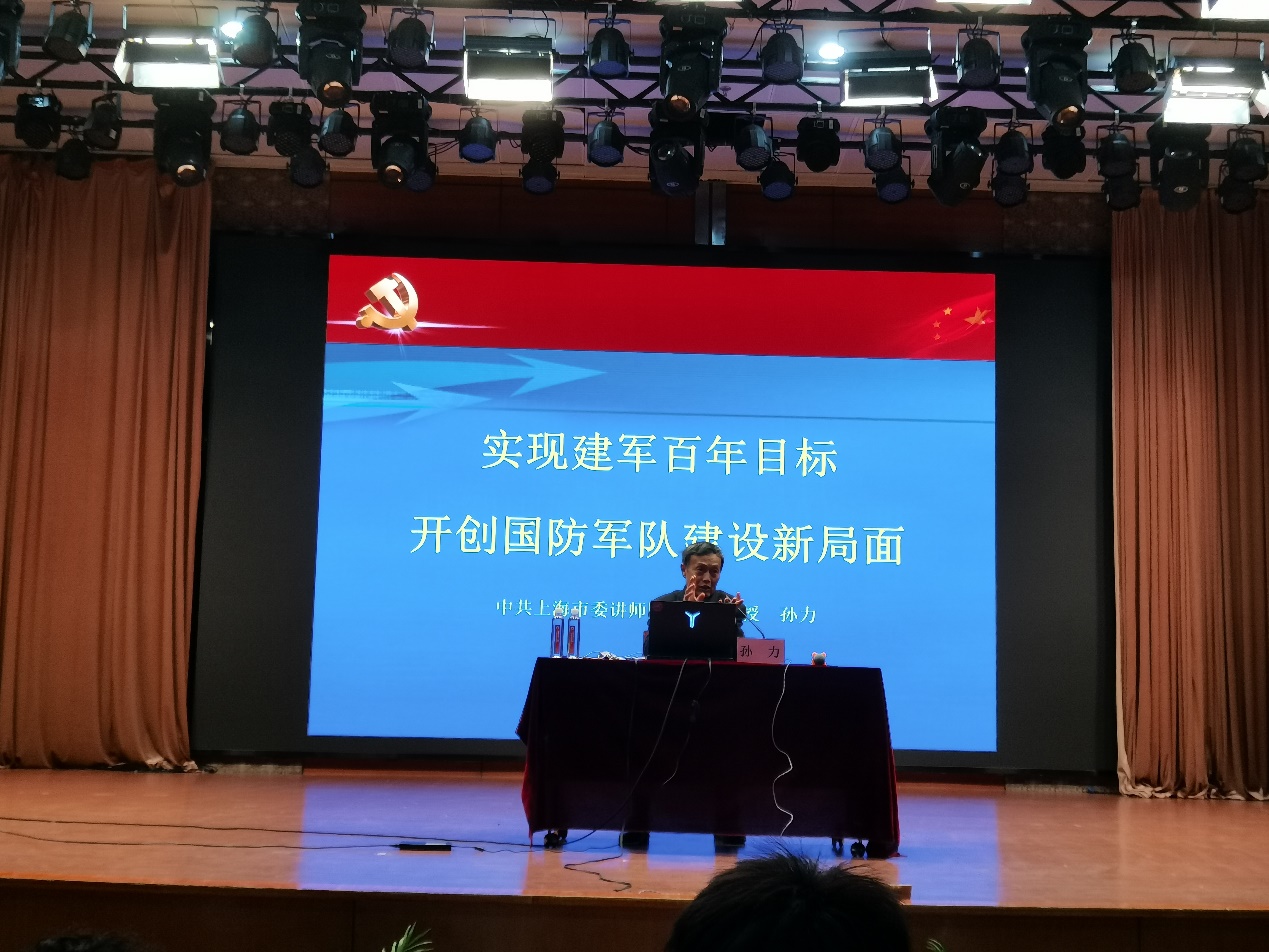 中共上海市委讲师团成员孙力教授应邀作“实现建军百年目标 开创国防军队建设新局面”的专题讲座。