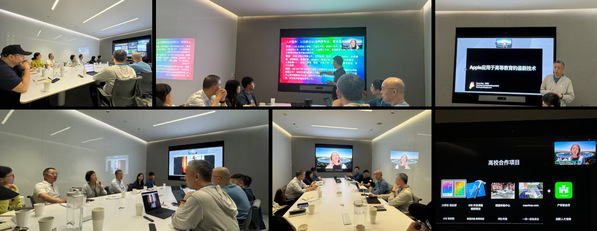 随后,计春雷介绍了信息工程学院的师资力量、专业建设及学生实习就业情况。他重点介绍了学院的未来发展规划,并且强调了人才培养和专业建设的核心方向。同时,他表达了与苹果公司深入合作的热切期望,希望双方能共同探索交流合作,以推动双方的共同发展。