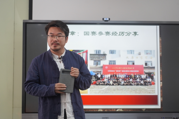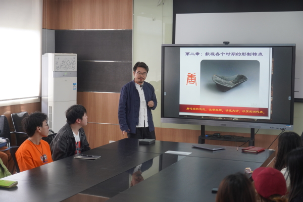 最后,胡慧君更是回顾了自己的求艺之路,虽道路且长,但行则将至。他鼓励学生们要传承弘扬中国传统文化,建立文化自信。通过本次分享会,可以更好的深入了解砚在历史发展上的地位,了解到非物质文化遗产是人类文明发展的珍贵记忆,是一种历史文脉的传承和延续。而一代又一代的新时代青年需要做到的便是学习与参与工匠精神,发扬与传承非遗文化。