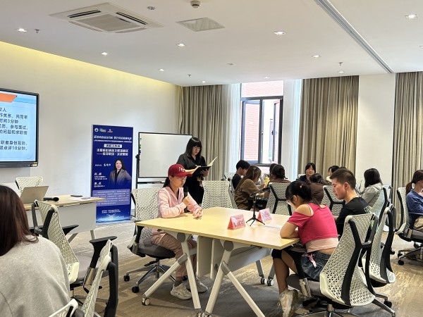 5月22日上午,学校邀请百师导企业发展(上海)有限公司联合创始人、上海阅邦品牌管理有限公司创始人高靖轩作题为《求职模拟演练之职场面试——探寻职场·实战赋能》的团体训练。本次团训主要围绕简历、模拟面试实战相关问题展开,高靖轩通过情景模拟和角色互换、岗位面试及简历辅导三个环节,分享了就业方向的选择、信息搜集、结构化面试等内容,针对应聘中可能遇到的综合分析题、活动组织题、人际关系题等具体题型进行了详细地分析解读。随后进行一对一模拟单面和群体单面面试环节,同学们试答结构化面试题目并逐一点评。在无领导小组面试讨论环节,高靖轩着重介绍了“无领导小组讨论”考察的核心能力、主要流程与应试技巧,使学生沉浸式体验真实的面试场景,掌握简历制作及面试技巧。