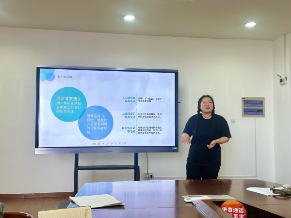 王乃馨以“沟通的美与艺术”为主题,展开谈心谈话技巧的分享,她从谈话前准备、沟通进行、非正式沟通、注意“雷区”四个方面展开,实操性地结合两个案例为大家讲解她的谈心谈话过程以及技巧。