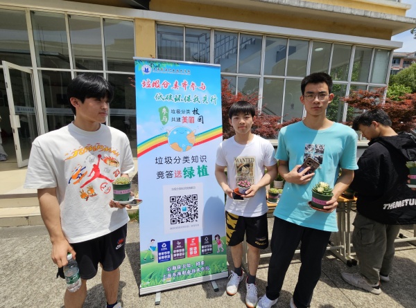 为深入贯彻落实习近平生态文明思想,全力推动垃圾分类成为低碳生活新时尚,进一步提升师生员工绿色环保理念,后勤保卫处和团委以第六届学生生态环保节为契机,于5月29日中午在体育馆门口开展了“垃圾分类齐参与,低碳环保我先行——垃圾分类知识竞答送绿植”活动。