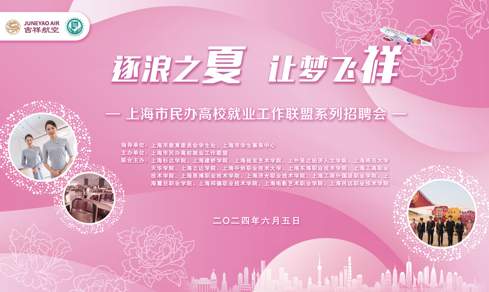 逐浪之夏,让梦飞翔。为落实教育部关于高校毕业生就业“百日冲刺”工作的决策部署,搭建人才供需对接桥梁,努力举办好区域性、行业性、联盟性招聘会,扎实开展专而精的校园专场招聘活动,促进毕业生高质量充分就业,6月5日,上海市民办高校就业工作联盟系列招聘会暨上海吉祥航空股份有限公司专场招聘会在我校匠兴苑B302-305会议室举行。