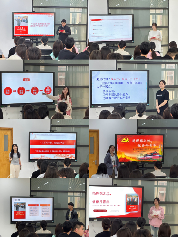 各楼宇安排领学人,读原文,学原理,结合自身专业背景开展领学交流,领学内容有高度、有特点、接地气,用“青言青语”对党的理论做好青年化阐释。经管学院领学人卢泽智以《弘扬民族团结,争做民族地区经济栋梁之才》为题,呼吁同学们重视民族团结及其对民族经济发展的重要性。机电领学人沈榕以《机电一体化与创新:共筑未来》为题分享了自身对于创新精神和大国工匠精神的理解。艺术设计学院领学人黄嘉怡以《习近平总书记点赞我们设计制作的机器人》为题,向大家分享了对“励志成才、孜孜不倦”等职业精神的认识和理解。护理学院领学人徐蕾同学以《习近平总书记勉励我们“立大志、明大德、成大才、担大任”》为题,分享对“爱国精神”的理解和认识。航空学院领学人魏伊那聚焦“习近平总书记勉励我们要把小我融入大我”“青年人要成人才、担大任”,激励同学们做有担当、有责任的未来民航人。传媒学院领学人姚懿祯结合领读篇目《职业教育前景广阔,大有可为》向大家分享了自身对于职业教育精神和大国工匠精神的理解。教育学院领学人王思彤以《扬理想之帆,做奋斗青年》为题,以张桂梅、李吉林等前辈们的事迹,激励学前学子们不断前行。信息工程学院领学人陈奥旗从“你想成为习近平总书记的朋友吗?”这个问题入手,号召同学们积极参与实践活动,从实践中发现问题、解决问题,做一个对社会和国家有贡献的人。