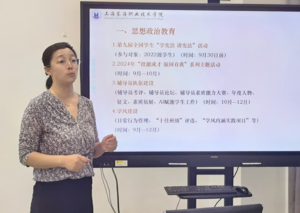 会上,保卫处处长张政军反馈开学以来学生安全稳定情况;教务处副处长杨威就学生学籍、学习通操作等进行介绍、说明。党委学生工作部部长岳宝华对本学期的学生工作进行了全面部署。她强调,一是要深入学习贯彻党的二十届三中全会精神,不断提升大学生思想政治教育工作的实效性;二是要围绕党委学生工作部下半年的工作重点,希望辅导员们能够做实、做细相关工作,真正成为学生的知心人、暖心人和引路人。