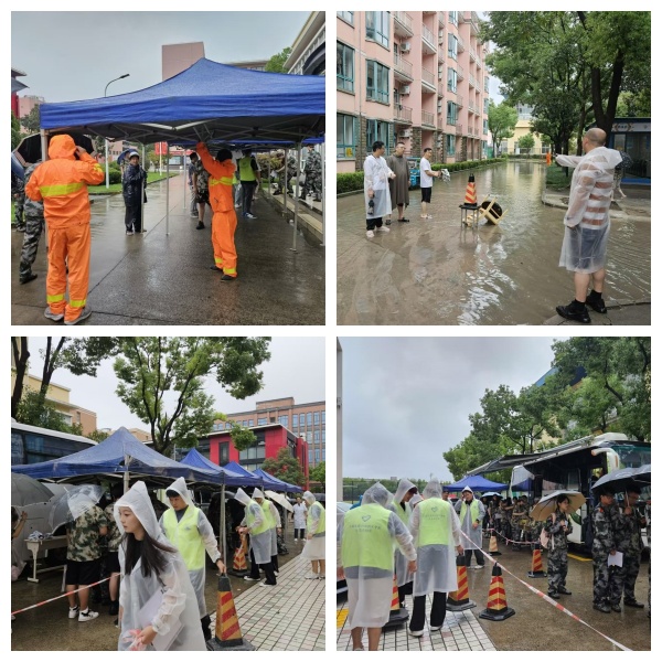 特别值得称赞的是,面对恶劣天气的挑战,后勤保卫处迅速启动应急预案,增设60多顶坚固的雨棚,面对瞬时暴雨造成女生生活园区积水,影响学生出行参加体检,后勤保卫处一方面采取打开排水井盖并设置警示标识快速排水,一方面积极想办法用短驳车接驳学生出生活园区参加体检,确保体检顺利进行。