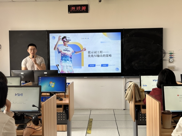 会议的压轴环节,闫含笑老师为在场教师们进行了一场关于提示词工程的精彩培训。闫含笑通过PPT演示、互动问答和实际操作演练,详细讲解了提示词的定义、重要性、基础结构、设计技巧、优化方法及其在教学中的应用,帮助与会教师们更好地理解提示词工程,以及设计有效的提示词来提高学生的学习效果。