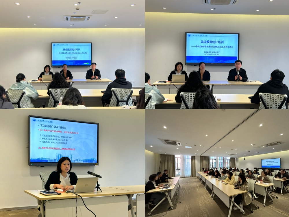 其次,就业办主任张春从就业形势与政策、学校2025届毕业生就业基本状况及近期就业工作要点等三个方面作了详细部署并提出了相关要求。随后,根据《教育部办公厅关于进一步做好普通高校毕业生就业统计与核查工作的通知》精神,组织学习“三不得”“四不准”就业工作要求和普通高校毕业生就业统计与核查工作要求。张春重点传达了上海市2024年高校数据员就业工作培训会的精神,其次,围绕积极做好毕业生就业推荐工作,认真做好毕业生就业进展统计工作,切实收集好毕业生就业佐证材料,循序做好毕业生就业跟踪,适时主动走访用人单位,准确掌握毕业生思想动态,务必严格落实“四不准”工作要求并从七个方面作了重点阐述。针对高质量就业监测,她强调了就业数据真实准确的重要性,就业工作人员要以攻坚姿态,全力抓好毕业生就业服务和就业监测工作,对精准就业帮扶和高质量就业监测工作提出了明确要求。