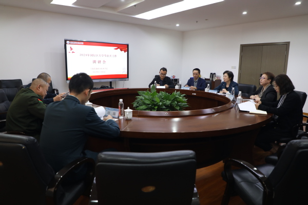 11月8日下午,闵行区委常委、人武部部长管明带领军事科科长郭军、军事参谋刘瑞一行莅临我校调研大学生征兵工作。我校党委书记曹蓉蓉、党委副书记王玉、武装部部长岳宝华、武装部副部长蒋久泉参加座谈会。