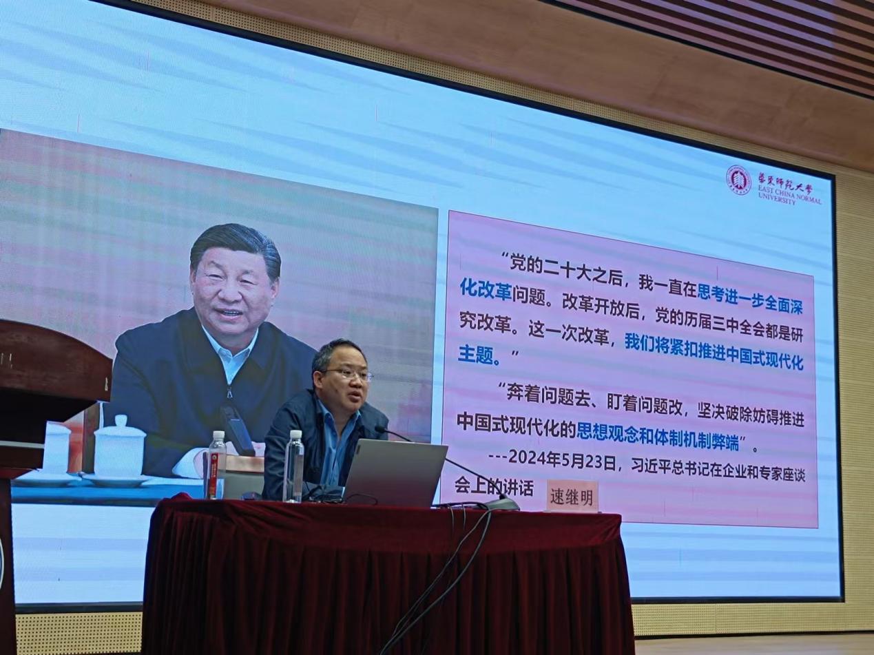 速继明围绕《中共中央关于进一步深化全面改革、推进中国式现代化的决定》,从三个方面进行了深入的解读:首先,从历史进程、召开背景的角度阐述了党的二十届三中全会的深远意义;随后,通过对二十届三中全会的主要议程和《决定》的重点内容的解读,清晰阐述了改革开放的内在逻辑,并从时代背景、战略定位、核心任务、主要思路等层面探讨了进一步全面深化改革与中国式现代化之间的关系;最后,速继明教授既从宏观层面介绍了进一步全面深化改革的战略部署特点,又从微观视角分析了改革中的具体措施。