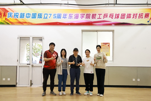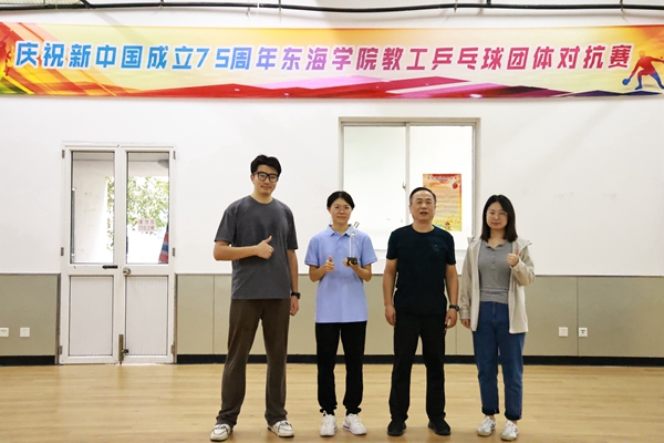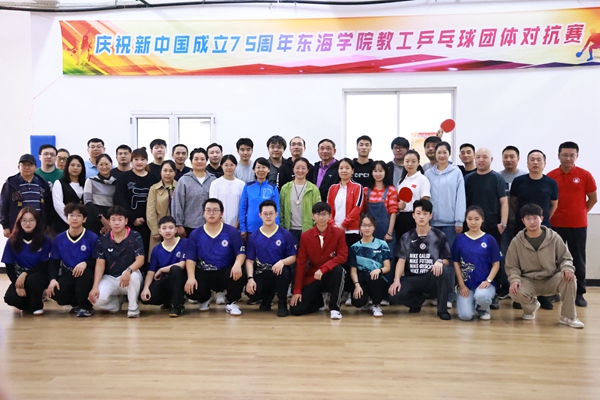 为进一步推进我校教职工健身运动的开展,提高教职工队伍健康水平,增进各单位教职工之间的交流,11月13日、14日,由校工会主办,基础部体育组、教工乒乓球协会承办的“庆祝新中国成立75周年东海学院教工乒乓球团体对抗赛”在体育馆一楼隆重举行。