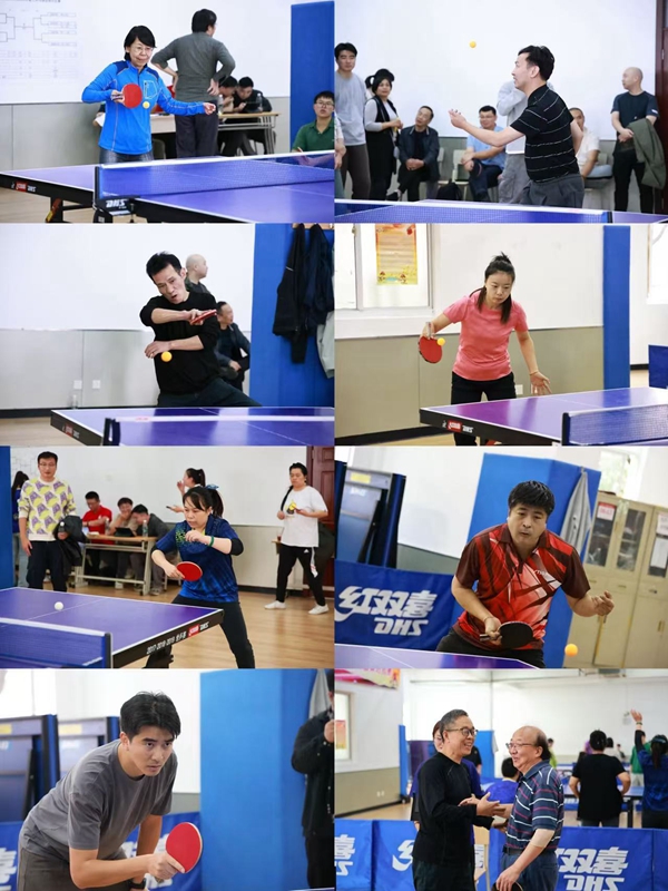 校长贺瑛、校长助理张居阳作为工会第一组参赛代表率先出战,精彩比赛拉开帷幕。来自学校各部门工会共10支代表队,约40名乒乓球爱好者参加比赛。比赛采用男单、女单、男单3场对抗赛形式,打满三场,三局两胜。经过小组赛、名次角逐赛最终决出前四名。比赛现场,选手们迅速进入状态,出其不意的发球、精妙的防守、犀利的进攻,不断将比赛推向高潮,场内欢呼声和掌声此起彼伏,现场气氛热烈。