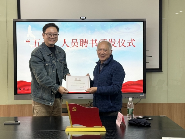 在与会师生的共同见证下,左田田为“五老”导师团成员薛万奉举行了聘书颁发仪式。
