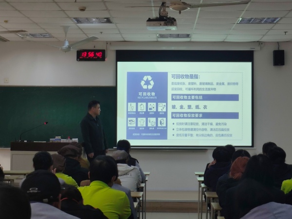 为进一步优化校园环境,深入推进校园垃圾分类工作,切实提升后勤员工的垃圾分类意识和实操能力,11月22日下午,后勤保卫处在东海源东503教室举办了一场垃圾分类专题培训会。
