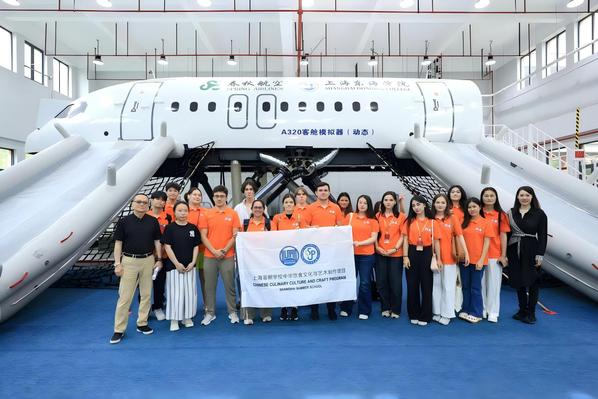 6月18日,2025年上海新时代国际暑期学校-中华餐饮文化与艺术制作项目东海学院研学日活动在我校举行,来自法国、俄罗斯、日本、越南、老挝、乌兹别克斯坦、印度等国的20位国际学员参加,上海第二工业大学国际教育学院办公室主任童欣婕带队。该项目由上海市教委主办,二工大承办,东海学院等单位协办。我校国际交流处处长孟昭上、招生就业处副处长张春、教育学院院长许铁梅、教育学院党总支书记马祥龙、航空学院空中乘务专业主任刘佩玉、教育学院团委书记陈美燕等参加相关校园活动。