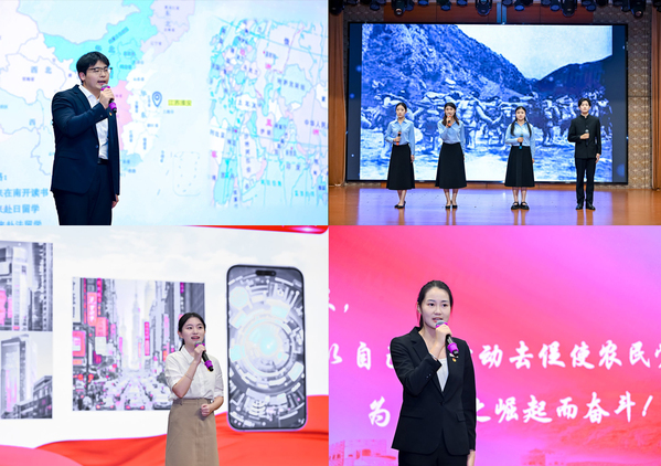 马克思主义学院教师王晓默主持大会红色故事展演环节,带领大家共同开启了一场穿越时空的精神对话,通过一个个鲜活的红色故事,让革命薪火在讲述与聆听中代代相传。中共四大纪念馆党支部副书记丁晓应邀以《力量之源——共产党人的初心使命》为题,用厚重的历史叙事将观众带回风雨如磐的革命年代,深刻诠释了中国共产党人历久弥坚的精神密码;李晔宇同学通过《我眼中的周恩来》,以青年视角再现了周总理“鞠躬尽瘁,死而后已”的崇高风范,让在场师生无不为之动容;航空学院学子带来的诗朗诵《永不消逝的声音》,以铿锵韵律演绎革命先辈的铮铮誓言,让红色信仰在声情并茂中薪火相传;蒋雨霏同学在《青春寻迹中国式现代化》的讲述中,展现了新时代青年将个人理想融入民族复兴伟业的使命担当;王轶儒同学深情讲述《革命教育先驱——夏征农》,通过老校长的教育情怀,生动诠释了红色基因在育人事业中的时代传承。