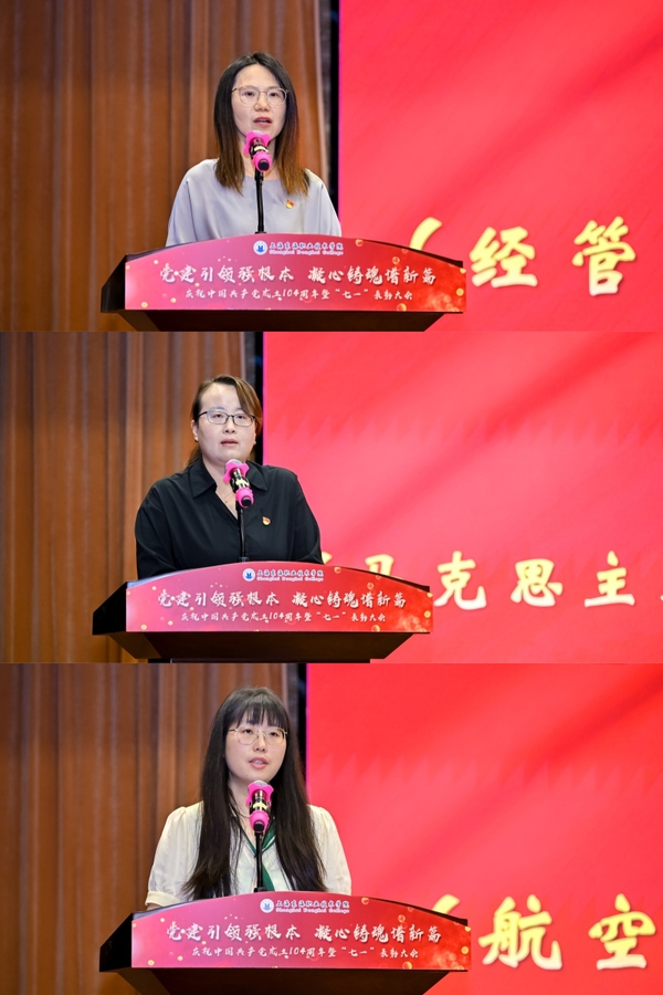 会上,三位获表彰代表结合工作实际作了交流发言。经管学院教师郑梅青作为优秀党员代表,分享了在教书育人中践行初心使命的生动实践;马克思主义学院直属党支部书记龙燕作为优秀党务工作者代表,交流了党建引领学科发展的创新做法;航空学院直属党支部书记葛徐艳则从基层党组织建设角度,介绍了打造“红色引擎”助推学院高质量发展的宝贵经验。