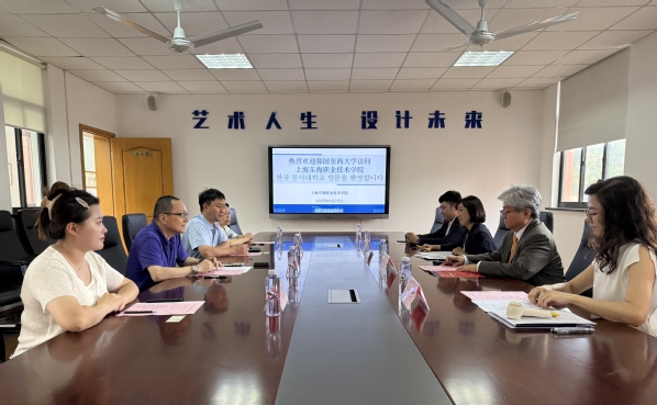 6月25日,韩国东西大学国际交流处处长韩京镐、科长李贤珍一行访问我校,上海留归集团副总李文俊、经理严红等陪同并担任翻译。我校国际交流处处长孟昭上、招生就业处处长蔡建平,艺术设计学院行政办公室主任丁依晨、服装与服饰设计专业教师李莎等热情接待了来访的韩国同行,双方进行了广泛深入的会谈。